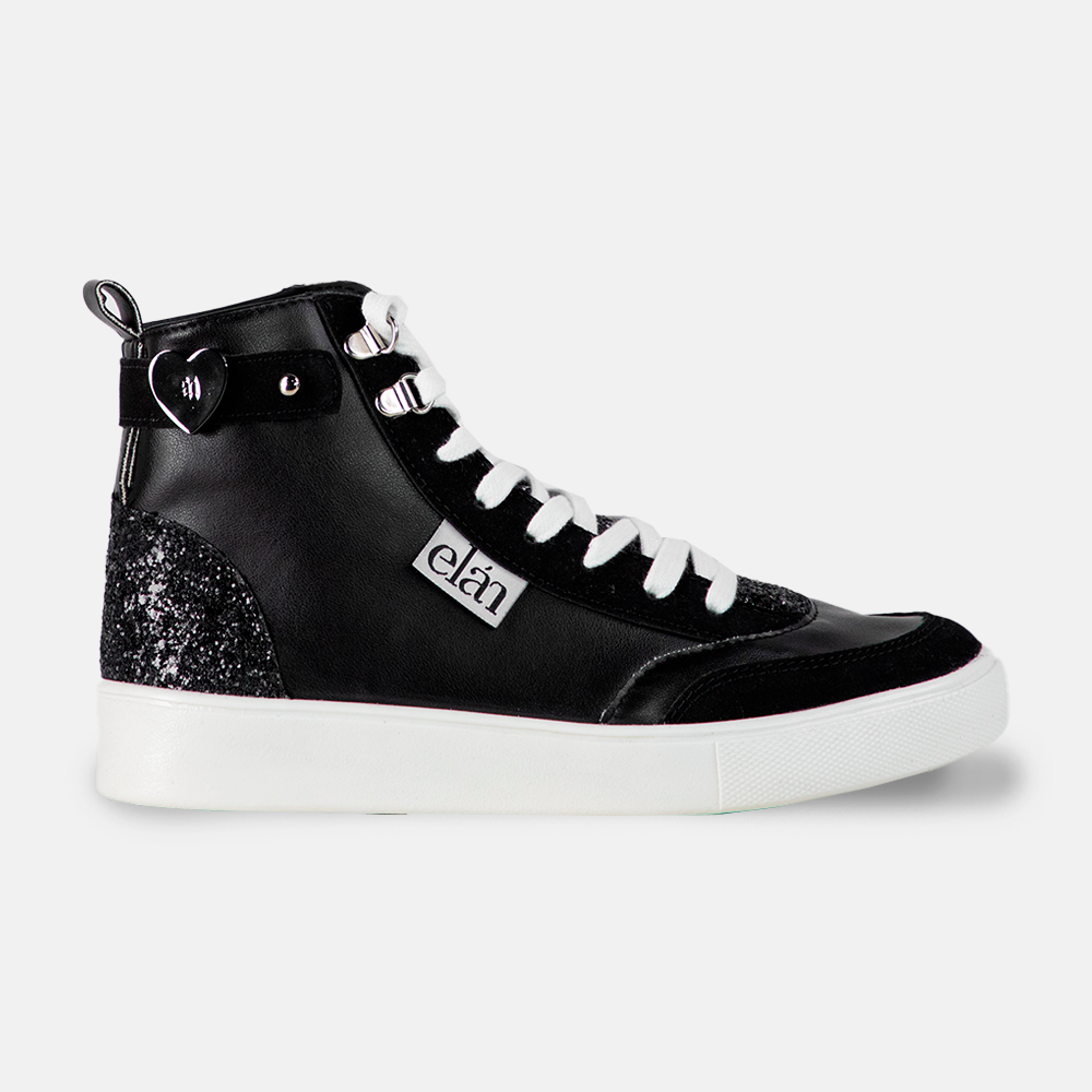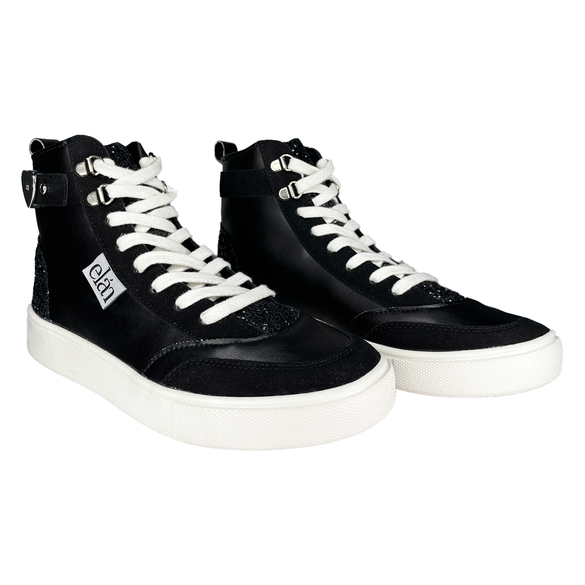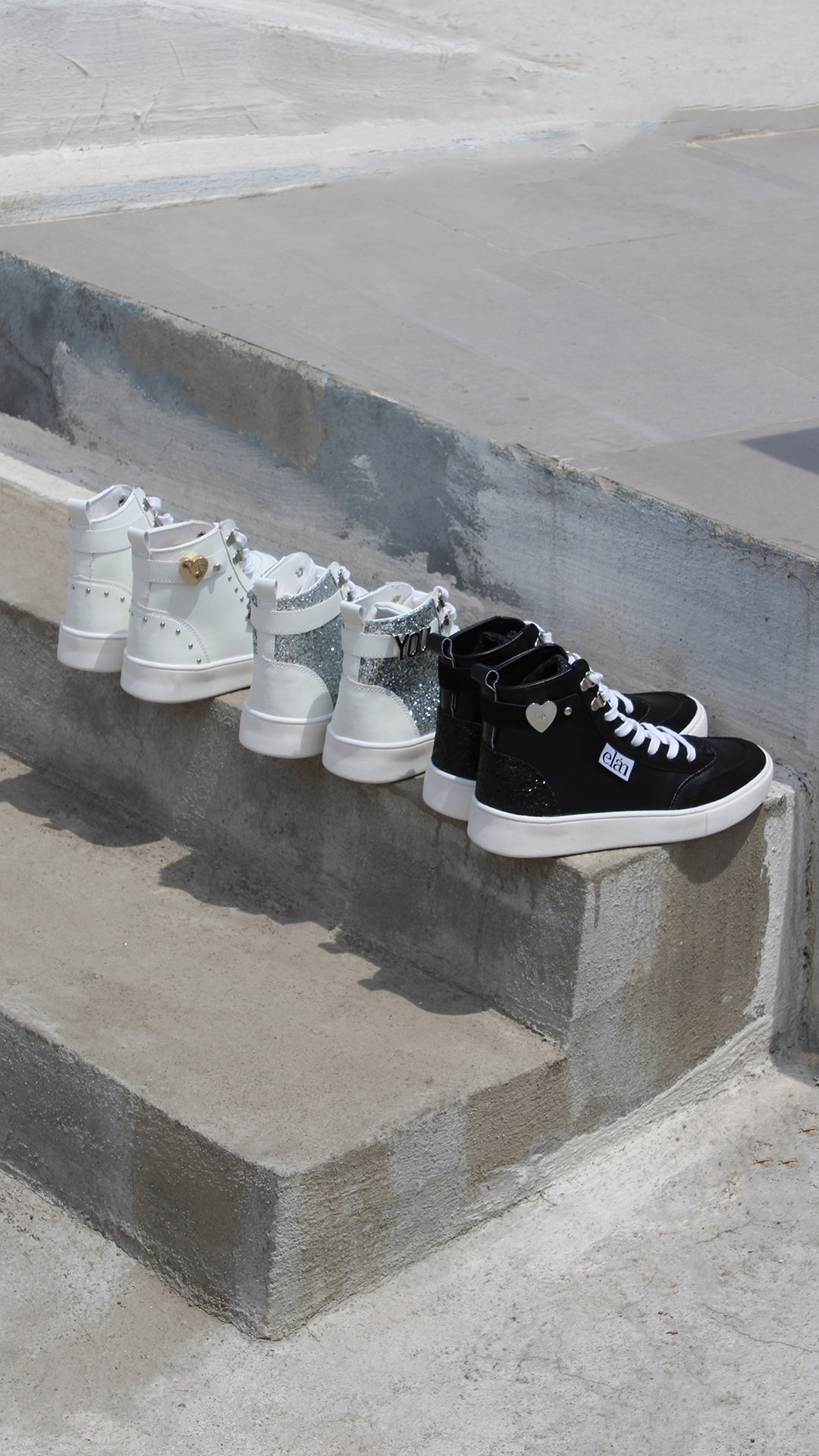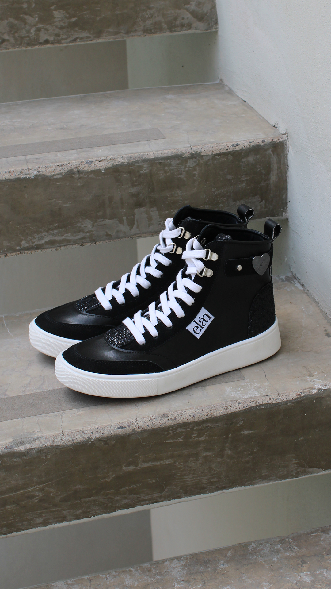 Introducing The Cordelia high-rise sneakers, blending urban chic with comfort. These vegan sneakers gleam in pristine white, adorned with a golden tongue and subtle gray accents, exuding sophistication. Crafted from nopal leather, they embody ethical fashion. Enhanced with delicate metal stitches and offering versatility with two sets of laces - one pair in pure white and the other featuring gray lines with white accents - The Cordelia redefines urban style.